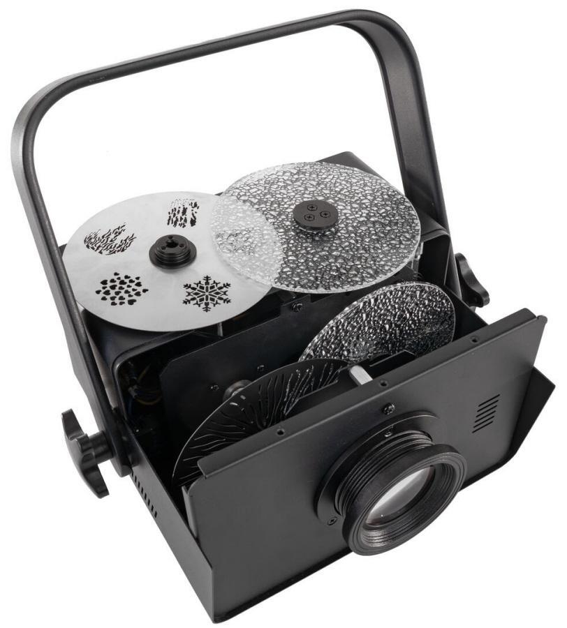 • 2 structure wheels, 1 animation wheel and 1 gobo wheel with 5 depictions included in the delivery